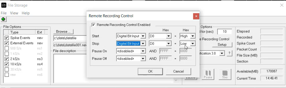 IV. Set up in Central: configure the Analog-In channel's (the one connected with the BNC cable) sampling frequency to >=2000 Hz